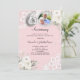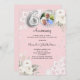 For an elegant and romantic 60th wedding anniversary. A blush pink coloured background decorated with white florals, roses, faux diamonds and white lace. Personalise and add your photo, names and details.