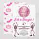 Pink Disco Ball Skeleton Halloween Party for Girls Invitation