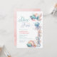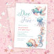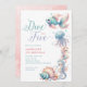 Pink Dive Into Five Under the Sea Mermaid Birthday Invitation features adorable watercolor illustrations of fish, seahorses and jellyfish in shades of purple, aqua, teal and pink.