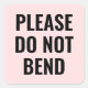 Minimalist, trendy, simple shipping / maliling business sticker with the text: please do not bend, in pastel pink.