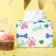 Pink Dog Paws Blue Bones Green Hearts Woof Pattern Wrapping Paper