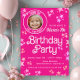 Pink fashion doll birthday party invitation with cute pink background and stars with spot for your photo.. This pink doll birthday party invitation works for any age, simply add your event details.