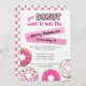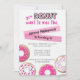 This adorable pink donut birthday invitation features a fun, modern design perfect for little kids’ celebrations. The layout showcases charming illustrated donuts with bright pink frosting, sprinkles, and soft pastel tones, creating a sweet and cheerful aesthetic. Playful mixed typography combines bold donut-patterned lettering with handwritten-style script for a lively, whimsical look. Layered pink text bars add a trendy, contemporary touch, making the birthday details stand out beautifully. Ideal for donut-themed parties, bakery celebrations, or any fun and colorful birthday event.