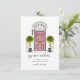 Cute and modern moving announcements let colleagues, friends and family know you a new home! Features include a sketched pink door illustration adorned with green trees with your custom title beneath. Personalise with your name and new address in a stylish duo of script and serif fonts.
