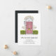 Charming and modern moving announcements let friends and family know about your new home sweet home! Design features a sketched pink door illustration flanked with green bushes, with "come and knock on our door" beneath. Personalise with your new address and family name or names.