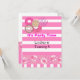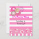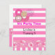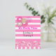Yummy grouping of pink doughnuts on a pink and white striped background. Add your birthday party information.