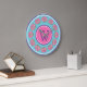Wall clock features an original illustration of a pink frosted doughnut with sprinkles, on a teal blue background. Just personalise with your initial for a fun bedroom or bathroom accessory.