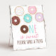 This adorable table sign would be a great addition to a doughnut themed birthday party. Place the sign in a frame and display at your party favour table. The design features our hand drawn doughnuts in pastel colours with sprinkle confetti.