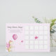 Cute baby shower bingo game for your celebration with a cute little dragon holding a pink balloon. Great for gender girl baby showers. Illustrated and designed by Patricia Alvarez.