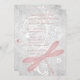 Create a unique invite all your own with a Pink Dragonfly bridal shower invitation. Invitation design features a vibrant dragonfly against an elegant floral vine and grey damask background. Personalise with the groom and bride's names along with the bridal shower details. Additional wedding stationery available with this design as well. Need help with customisation? Please contact me and I will work out the wording and details to fit this design to your satisfaction.