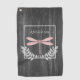Personalise a unique towel for golfing with a Pink Dragonfly Rustic Personalised Golf Towel. Towel design features a vibrant dragonfly adorned with delicate foliage against a dark grey rustic wooden background. Additional gift items available with this design as well as a variety of colours.