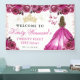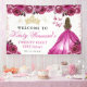 Gorgeous Watercolor Blonde haired princess in fuchsia pink dress design with pink roses and flowers, tiara, pink and gold glitter