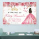 Pink Dress Brunette Princess Floral Quinceanera Banner