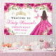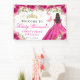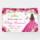 Pink Dress Dark Skin Princess Floral Birthday Banner
