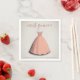 These vintage-style quinceañera mis quince party table decoration napkins feature a beautiful light pink dress on a grey background.