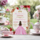 Pink Dress Red Flowers Princess Gold Mis Quince Invitation
