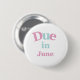 A cute maternity design on T-shirts, buttons, mugs, tote bags, and other items, great for the pregnant mum to be and also the dad to be with pink text design that reads "Due in June"!