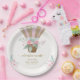 Pink Elegant Floral Hot Air Balloon Baby Shower Paper Plate