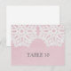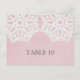 Simple and sophisticated Elegant Lace Wedding Table Number Postcard featuring a white lace doily motif on a light pink faux vintage paper background. This classic and stylish table card is perfect for a rustic wedding. Easy to customise with the appropriate table number(s). Click "Customise It" to find more personalisation options.