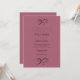 Printed in an opulent, classic font, the wording glides across the page with effortless grace, inviting your guests to share in a celebration as enchanting as the love story it represents. A keepsake of timeless elegance, this invitation is a whisper of romance, an heirloom of your love’s most beautiful beginning. Pink/mauve background.