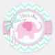 Pink Elephant and Chevron Print Thank You Classic Round Sticker