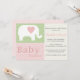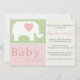 Pink and green polka dots pattern with an elephant and heart silhouette. This baby shower invitation is perfect for it's a girl baby showers.