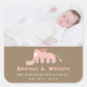Pink Elephant Baby Girl Photo Birth Announcement Square Sticker