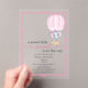 Celebrate the arrival of your little peanut with this charming baby shower invitation! Featuring a sweet watercolor elephant floating in a soft pink hot air balloon and the text "a sweet little peanut is on the way", this design is perfect for welcoming a baby girl.