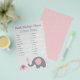 Use our pink and grey elephant themed baby shower game cards to play "Finish Daddy's Phrase." Guests will guess how the daddy-to-be completed each of the twenty words listed on the game.