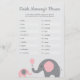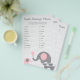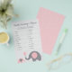 Use our pink and grey elephant themed baby shower game cards to play "Finish Mummy's Phrase." Guests will guess how the mummy-to-be completed each of the twenty words listed on the game.