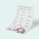 Use our pink and grey elephant themed "What's in Your Purse Game" to play this easy and popular shower game. The guests will check off the items that they have in their bags/purses and whoever has the most points tallied wins.