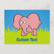 Cute pink baby elephant cartoon. Custom text.