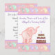 Adorable Pink Elephant 1st Birthday Party Invitation.