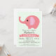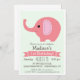 Baby pink elephant with polka dot ear, jungle, zoo animals, safari theme girl birthday party invitation. Personalise this cute, retro feel invite with your child's name. Cute, simple, plain design. Perfect for baby's first, 1st, birthday, toddler, young children, or older kids. Colours include pastel pink and brown..