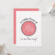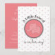 Pink, polka dots are the background for a sweet, white elephant in a big, pink circle. "A little peanut is on her way" is the headline. The backside includes all the pertinent baby shower information.