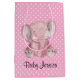 Pink Elephant Polka Dot Design Gift Bag with your choice of background colour and customisable text. For no text, please delete the sample text and leave blank.