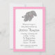A girl baby shower invitation, featuring a cute grey elephant illustration on a pink polka dot background. Graphics © Scrappin Doodles at www.scrappindoodles.com