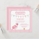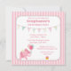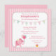 This super cute 5.25x5.25 girls birthday party invite has a pink stripe background with an elephant holding some balloons in the middle. There is also a cupcake and a banner. You can easily customise the birthday party information in the middle. Some elements are Graphics by Lilly Bimble at MyGrafico