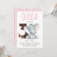 Pink Elephant Third Birthday Invitation