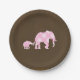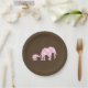 Pink Elephants Brown Trendy Modern Baby Shower Paper Plate
