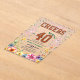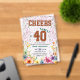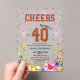 A modern design featuring a dark gold glitter number 40 with pink and emerald glitter and colorful flowers on the bottom. Customize the details for a chic Birthday Celebration.