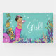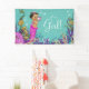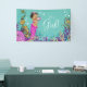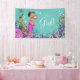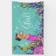 Mermaid baby shower banner with adorable pink African American mermaid on a pretty undersea background with gold seahorse and fish, coral, sea plants and bubbles on a choose your own colour background. This beautiful ethnic mermaid baby baby shower banner is easily customised for your event by simply adding the text of your choice.