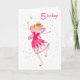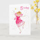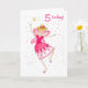 A pretty 5th Birthday card with a fairy, dressed in blue, sprinkling fairy dust, from a watercolour painting by Judy Adamson. Matching party invitations, t-shirts and gifts also available.