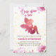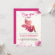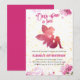 A delicate fairy, adorned in shades of pink and surrounded by a flurry of flowers, graces the front of the invitation, spreading her wings in a gesture of joy and wonder. Behind her, a garden blooms with vibrant hues of pink and purple, creating a scene straight out of a fairy tale.