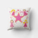 Pink Fairy Princesses pillow with a big pink star and four fairy princesses dressed in pink dresses with magic wands on a white background.
