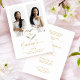 Pink Fancy Romantic Floral Heart Faux Gold 2 Photos Metallic Foil Graduation Invitation Card with Envelope.
