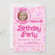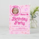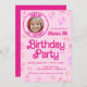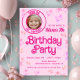 Pink doll birthday party invitation with cute pink background and stars with spot for your photo.. This pink doll birthday party invitation works for any age, simply add your event details.