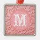 Pink Filigree Wood Carving Floral Glam Glamour Swirl Monogram Initial Christmas Ornament Personalised