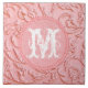 Pink Filigree Wood Carving Floral Glam Glamour Swirl Monogram Initial Decorative Display Tile Personalised