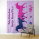 This fun gender reveal mural features a blue colt and a pink filly on a pink and blue background. The text is easily revealed.